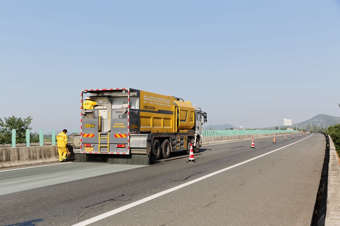 2018年高远公司在湖北武荆高速进行KF-1抗滑雾封层施工